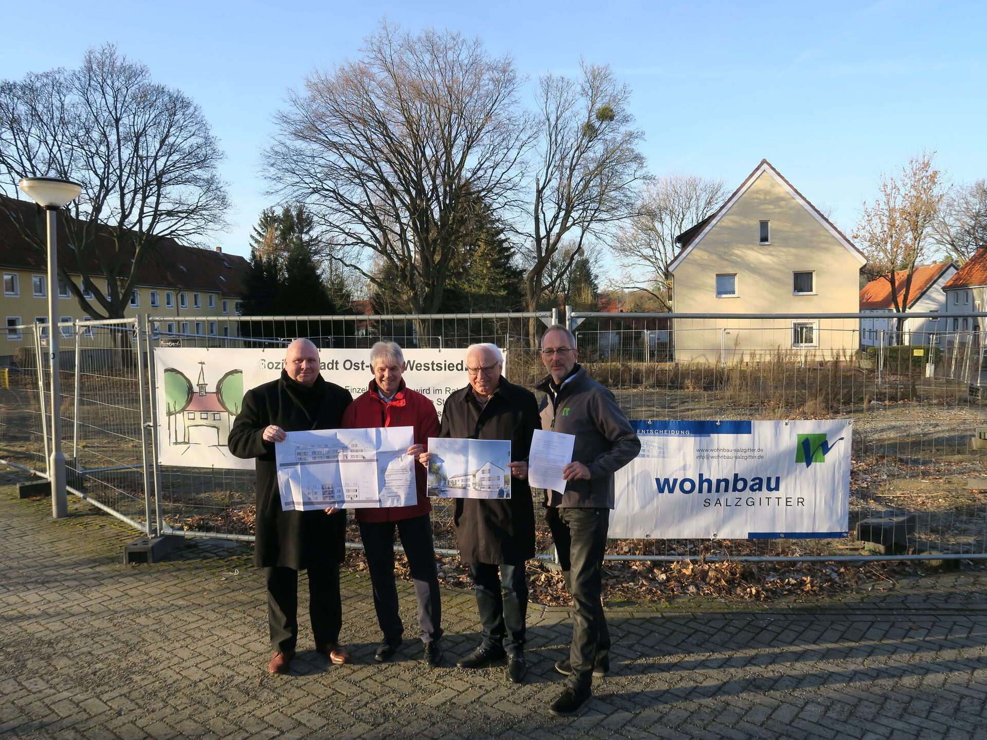 Vor Ort waren ebenfalls die Geschäftsführer der städtischen Wohnbau Salzgitter GmbH, Jens Bischoff und Christian Heinrich, und der Aufsichtsratsvorsitzende der Wohnbau, Rolf Stratmann.
