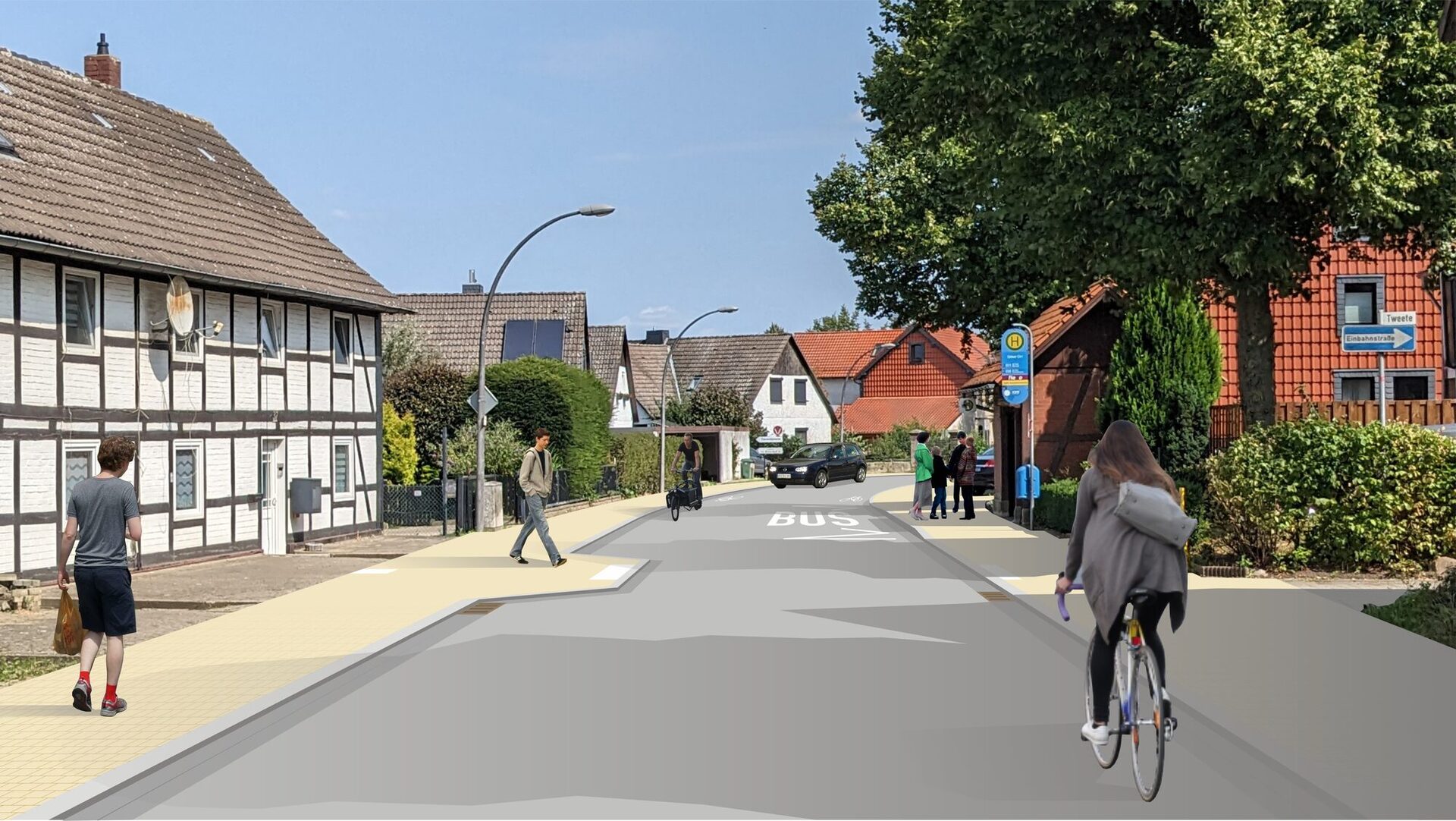 Die gesetzten Ziele für eine zukünftige Gestaltung sind die Herstellung der Barrierefreiheit, das Verbreitern der Gehwege und die Schaffung von Querungsmöglichkeiten der Straße für Fußgänger/innen und Radfahrende. Es soll ein Angebot für den Radverkehr geschaffen werden, sowohl für alltägliche Fahrten, als auch Freizeitrouten.