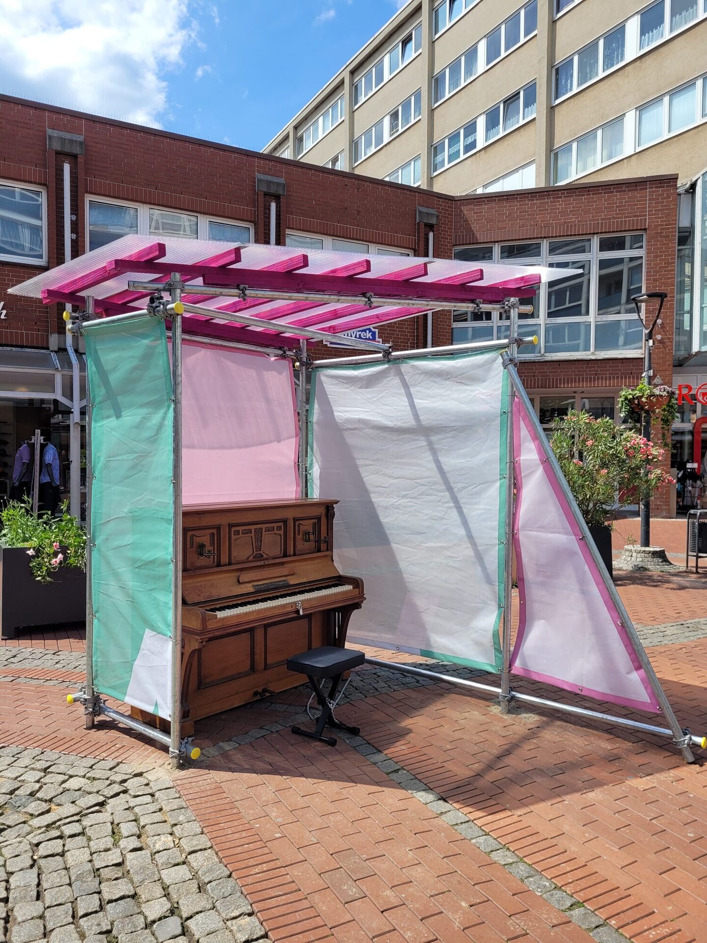 In der vorletzten August-Woche werden dann mitten in Zentrum ein Basketballkorb, eine Tischtennisplatte, eine kleine Kletterwand, ein Klavier und eine Ausstellungsfläche aufgestellt. Neu dabei ist außerdem eine Bühne auf dem Klesmerplatz.