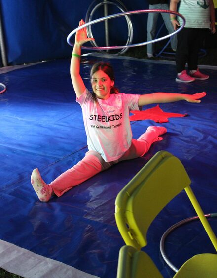 Die Kinder teilten sich in unterschiedliche Gruppen auf, um die jeweiligen Zirkusnummern zu lernen. Ob Luft- oder Bodenakrobatik, das Auftreten als Clown oder als Feuerartistin/Feuerartist: Für jedes Kind war etwas mit dabei. In den darauffolgenden Tagen wurde fleißig geübt, manche Kinder bereiteten sich sogar in ihrer Freizeit auf ihren großen Auftritt bei der Galavorstellung vor großem Publikum vor.