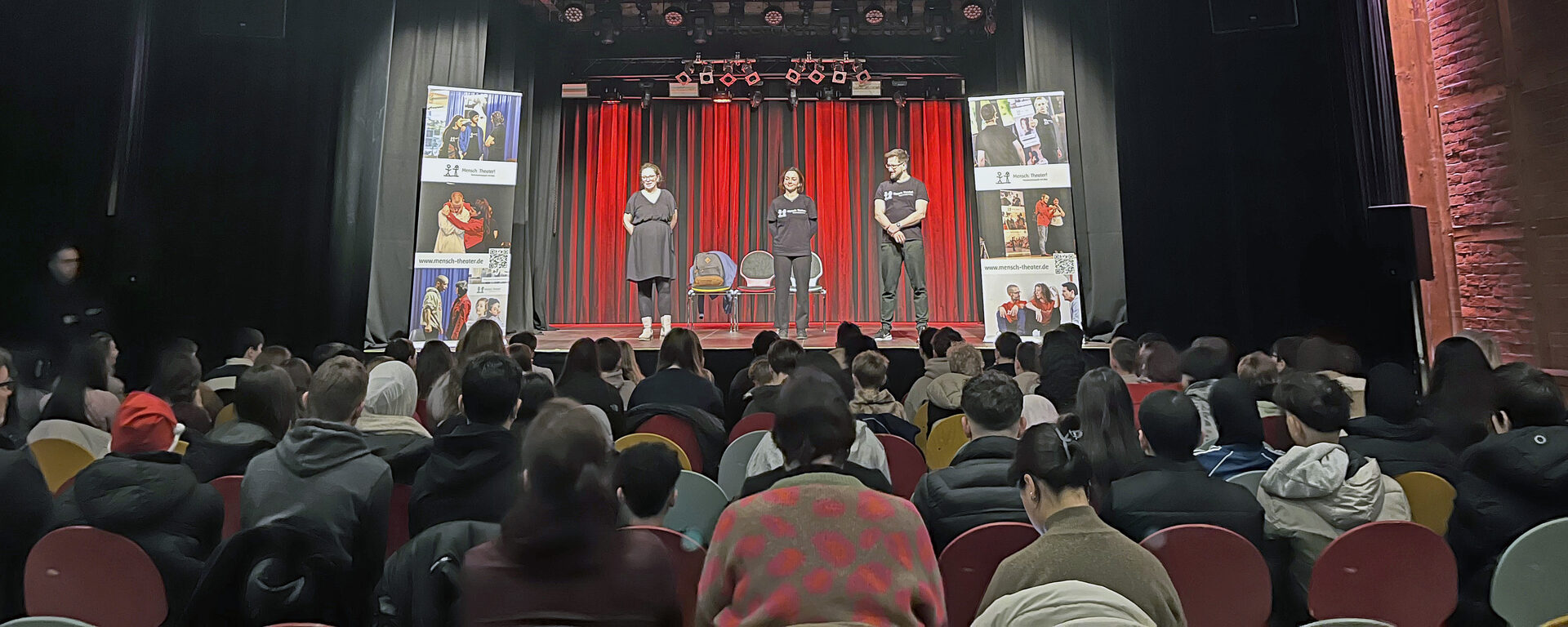 An zwei weiteren Tagen hat das Ensemble „Mensch, Theater!“ das Stück „Meine, Deine, Unsere Welt – Mobbing“ in der BBS Fredenberg aufgeführt. Dabei haben sich 360 Schülerinnen und Schüler ab 16 Jahren das Stück zum Thema Mobbing angeschaut und die Themen in den darauffolgenden Workshops vertieft. Gemeinsam wurden Strategien gegen Mobbing entwickelt. Außerdem wurden die Themen Vorurteile und Rassismus besprochen. Insgesamt wurden vier Aufführungen und zwölf Workshops angeboten.