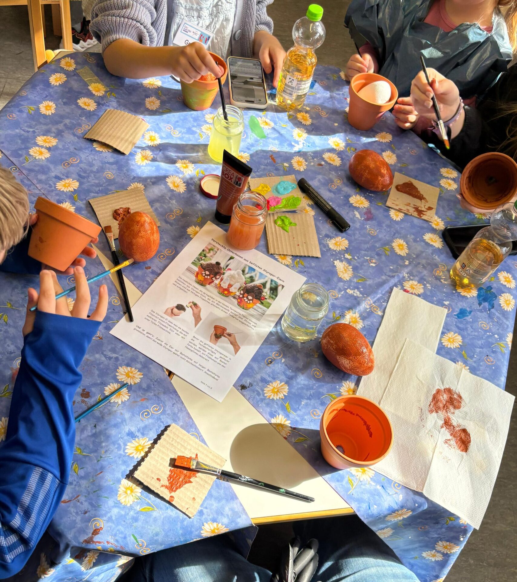 Das Angebot war vielseitig und bunt: Caps und Schlüsselanhänger wurden bestickt, aus Wolle entstand ein gefilzter Wimpel, und mit Ton wurde fleißig getöpfert. Dazu kamen selbst gestaltete T-Shirts, eigenes Papier aus der Schöpfwanne und kreative Drucke mit Druckstöcken. Auch Ostern kam nicht zu kurz: Beim Basteln von Deko und Karten sowie beim Backen entstanden viele kreative und leckere Ergebnisse, die für extra gute Stimmung sorgten.