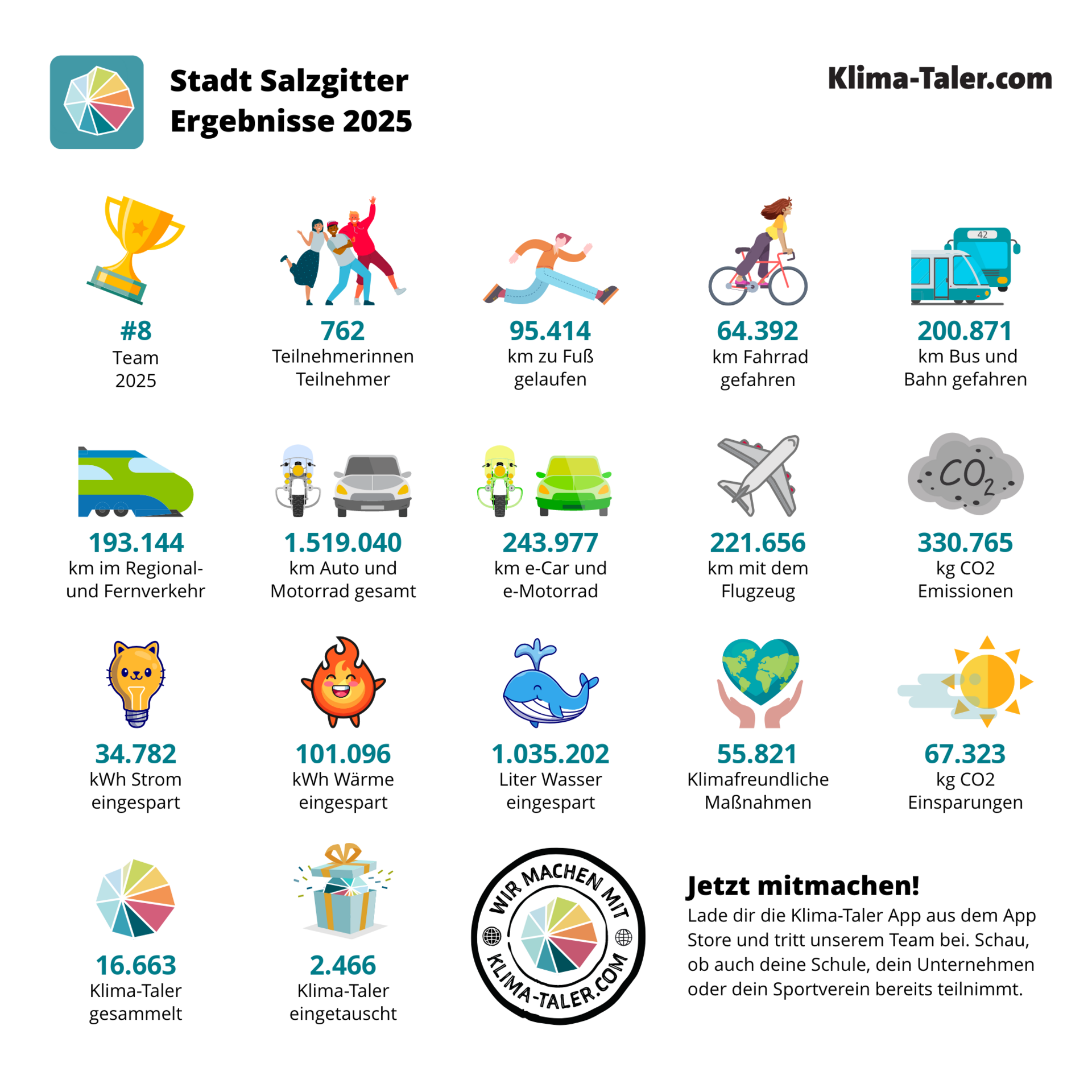 Climate Thaler este o idee simplă și eficientă de a motiva toți participanții să economisească CO2 prin propriul lor comportament. Orașul Salzgitter participă cu succes la proiectul pilot național Climate Thaler de aproximativ șase luni. Aproximativ 800 de cetățeni au descărcat pur și simplu aplicația fără să se înregistreze și colectează jetoane.
