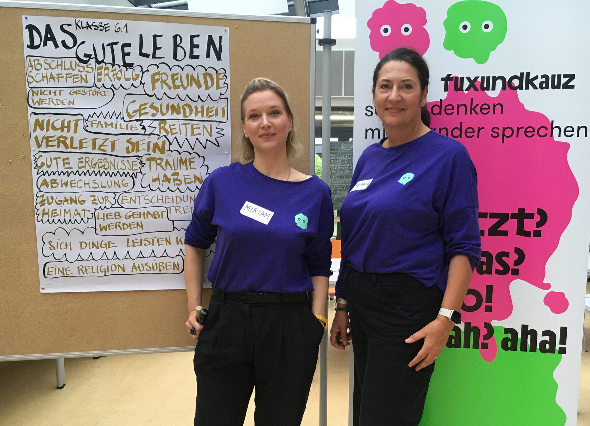 Zu ihnen kamen „fuxundkauz“-Projekt-Gründerinnen Miriam Holzapfel und Stefanie Segatz, die ausgestattet mit vielen Ideen, Gedanken und Fragen, einem Flipchart und nicht zuletzt dem projekteigenen, farbenfroh gestalteten Magazin „filofux“ schon sehr gespannt waren, wie die Kinder ihre „Denkshops“ annehmen und was sie daraus entwickeln würden.