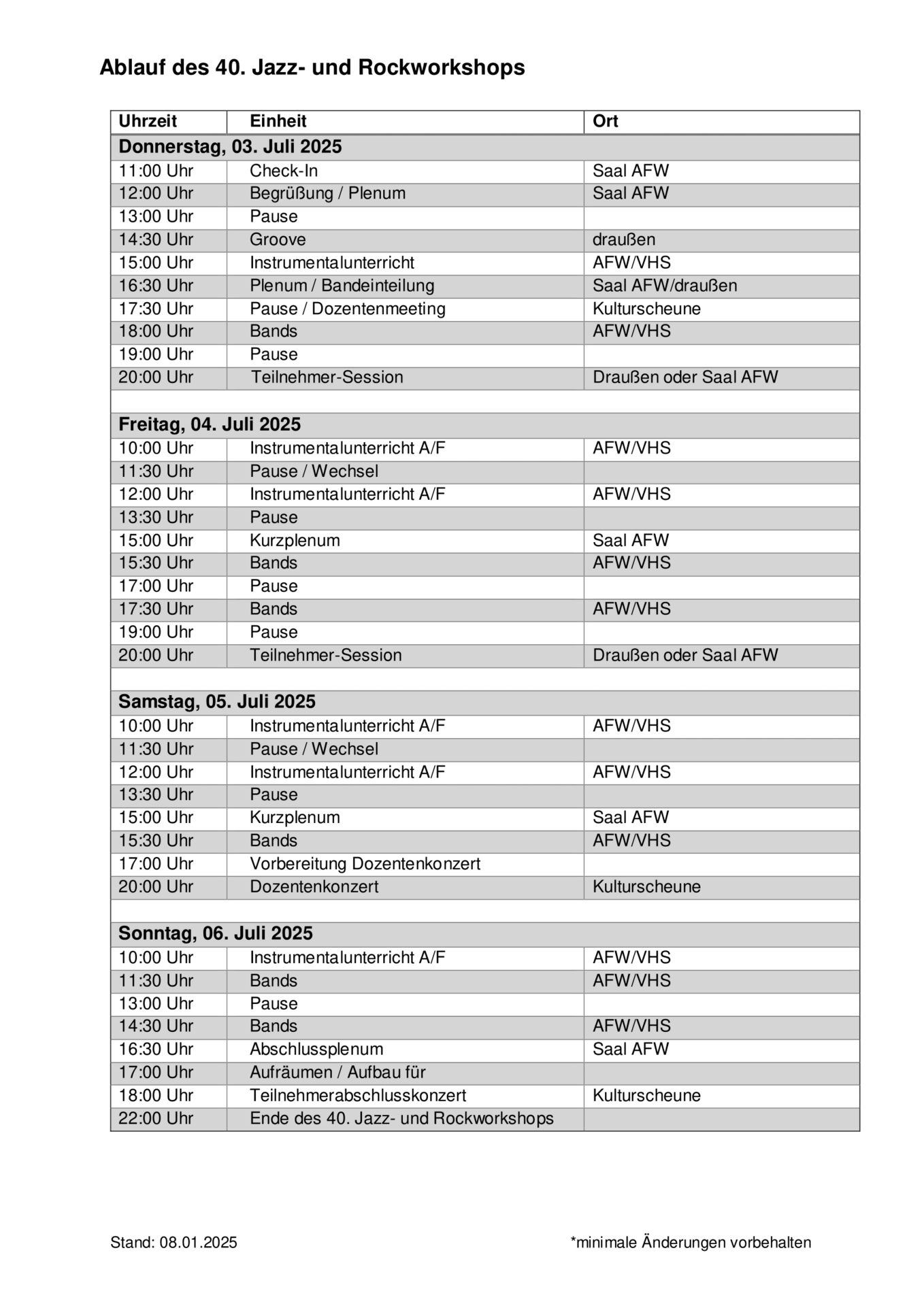 Hier erfahrt Ihr mehr zum Ablauf des Jazz- und Rockworkshops 2025.