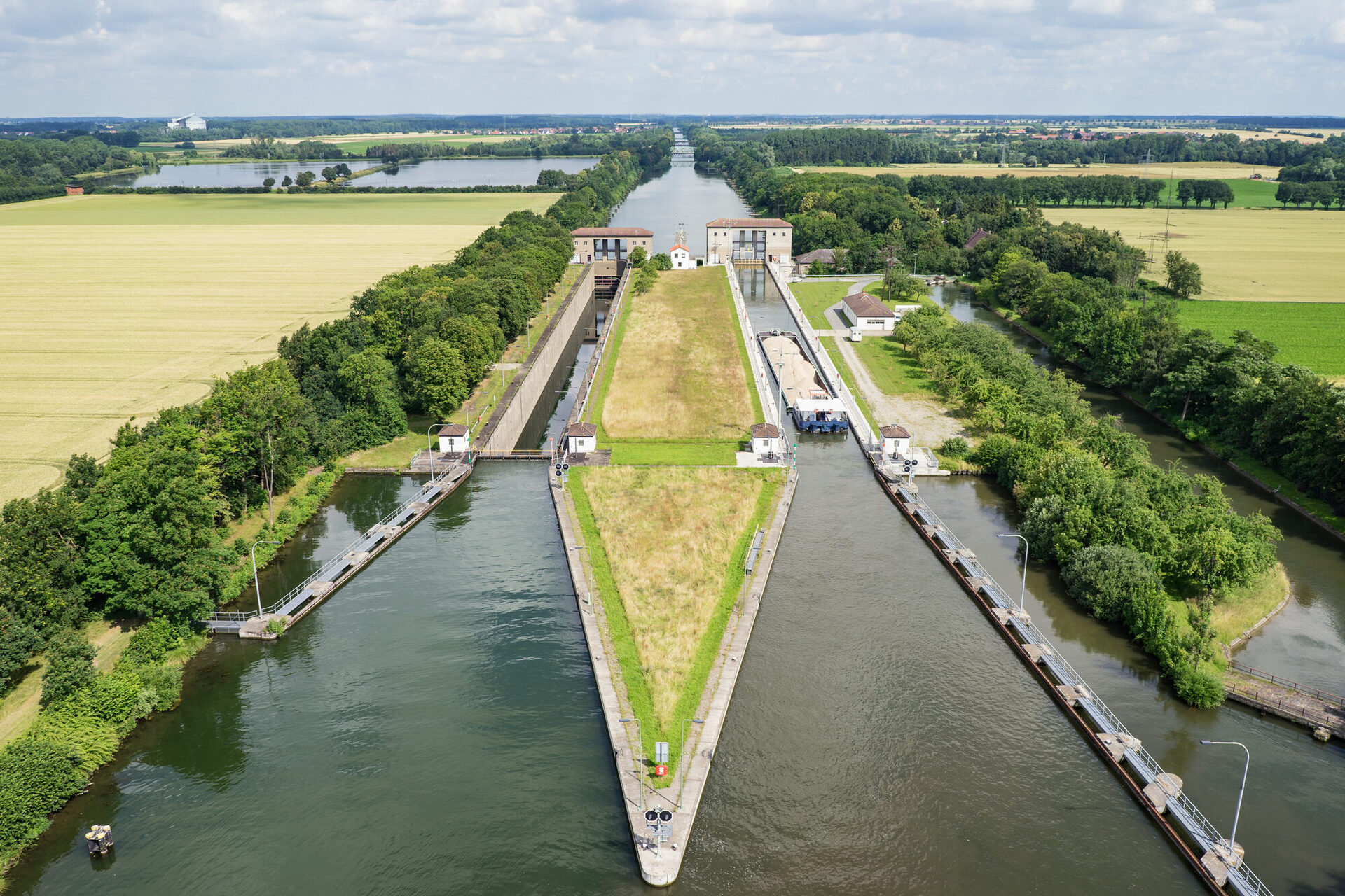 Zwei Doppelschleusenanlagen – bei Üfingen und Wedtlenstedt (Landkreis Peine) – waren erforderlich, um den Höhenunterschied bis zum Mittellandkanal überwinden zu können. Die Kammern der Schleuse Üfingen sind über 200 Meter lang und fassen mehrere zehntausend Kubikmeter Wasser. Die Schiffe überwinden an der Schleuse Üfingen einen Höhenunterschied von neun Metern. Heute dient der Kanal nicht nur der Wasserwirtschaft, sondern auch als Naherholungsgebiet.