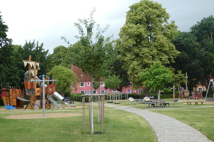 Die Umgestaltung und Aufwertung des alten Spielplatzes an der Danziger Straße zum „Landratten Spielplatz“ war das erste große Bauprojekt innerhalb des Stadterneuerungsprozesses im öffentlichen Raum. Der Spielplatz liegt im Innenbereich des Straßenblocks Danziger Straße/Schäfersteig/Am Sternkamp/ Breslauer Straße und wurde 2019 eröffnet. Auf rund 4.000 Quadratmetern wurden neue Spiel-, Verweil- und Begegnungsorte geschaffen sowie die Wegebeziehungen verbessert.