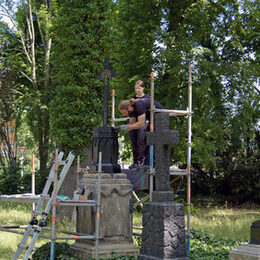 Aufbau von GrabdenkmalenRund drei Monate haben die Restaurierungsarbeiten gedauert: Ende Juni wurden die Grabdenkmale der Familie Sievers auf dem Vöppstedter Friedhof wieder aufgebaut.
