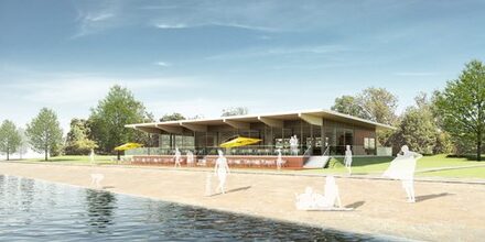 Nach Fertigstellung können dann 120 Gäste innen und bis zu weitere 200 auf der Sonnenterrasse neben Essen und Trinken auch die herrliche Aussicht über Strand und See bis zum Salzgitter-Höhenzug genießen.