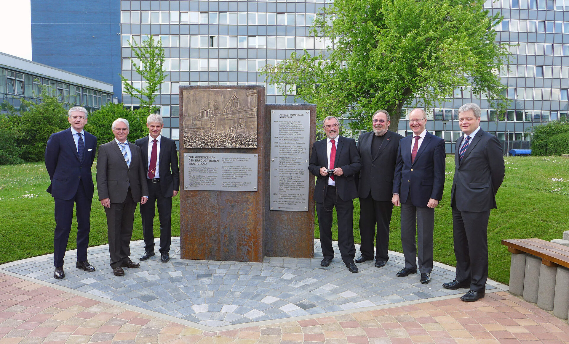 Zwei Stahlbrammen würdigen den entschiedenen Widerstand von Belegschaft, Betriebsrat, Gewerkschaften, Parteien, Kirchen und Bevölkerung gegen den Abbau der Industrieanlagen nach 1945 auf der Basis einer Entscheidung der alliierten Reparationskommission in Brüssel. Die beiden 5,5 und 6 Tonnen schweren Brammen sind einen Meter breit und rund drei Meter hoch.