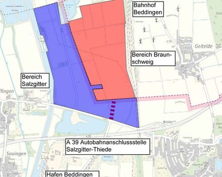 Nördlich der A 39 an der Stadtgrenze zwischen den beiden Oberzentren soll das neue Gewerbegebiet entstehen. Die verkehrliche Anbindung ist dort mit der A 39, dem Verschiebebahnhof Beddingen, dem Hafen Beddingen sowie dem Güterverkehrszentrum nahezu ideal.