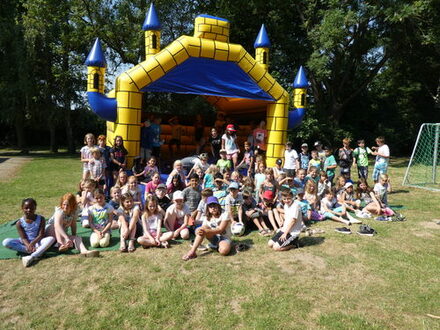 Klettern, spielen und hüpfen stehen ebenso auf dem Programm wie batiken, basteln oder zeichnen. Die 100 Kinder haben eine Woche lang sehr viele Spielmöglichkeiten. 15 Betreuer kümmern sich unter der Leitung von Carolin Bodenburg, Michaela Grabowski und André Greco um den reibungslosen Ablauf.
