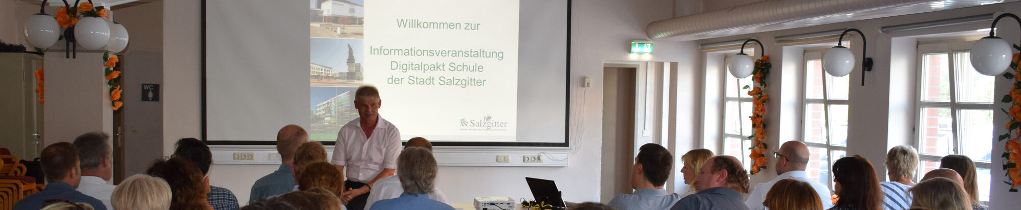 In dieser ersten Informationsveranstaltung stellte Andreas Reichelt, der stellvertretende Fachdienstleiter Bildung, die Eckpunkte der Umsetzung des Digitalpaktes vor. Ausgehend von einem Sockelbetrag von 30.000 Euro für jede Schule kommt je Schülerin und Schüler ein Kopfbetrag hinzu. Voraussetzung für die Beantragung durch die Stadt Salzgitter als Schulträgerin ist die Ausarbeitung eines Medienbildungskonzeptes durch die jeweilige Schule und eines übergreifenden Medienentwicklungskonzeptes durch die Stadt Salzgitter. Hinsichtlich der Verwendung der Fördergelder muss auch beachtet werden, dass primär der Ausbau der digitalen Infrastruktur in den Schulen (also z.B. WLAN) und nicht die Beschaffung von Endgeräten im Fokus steht.