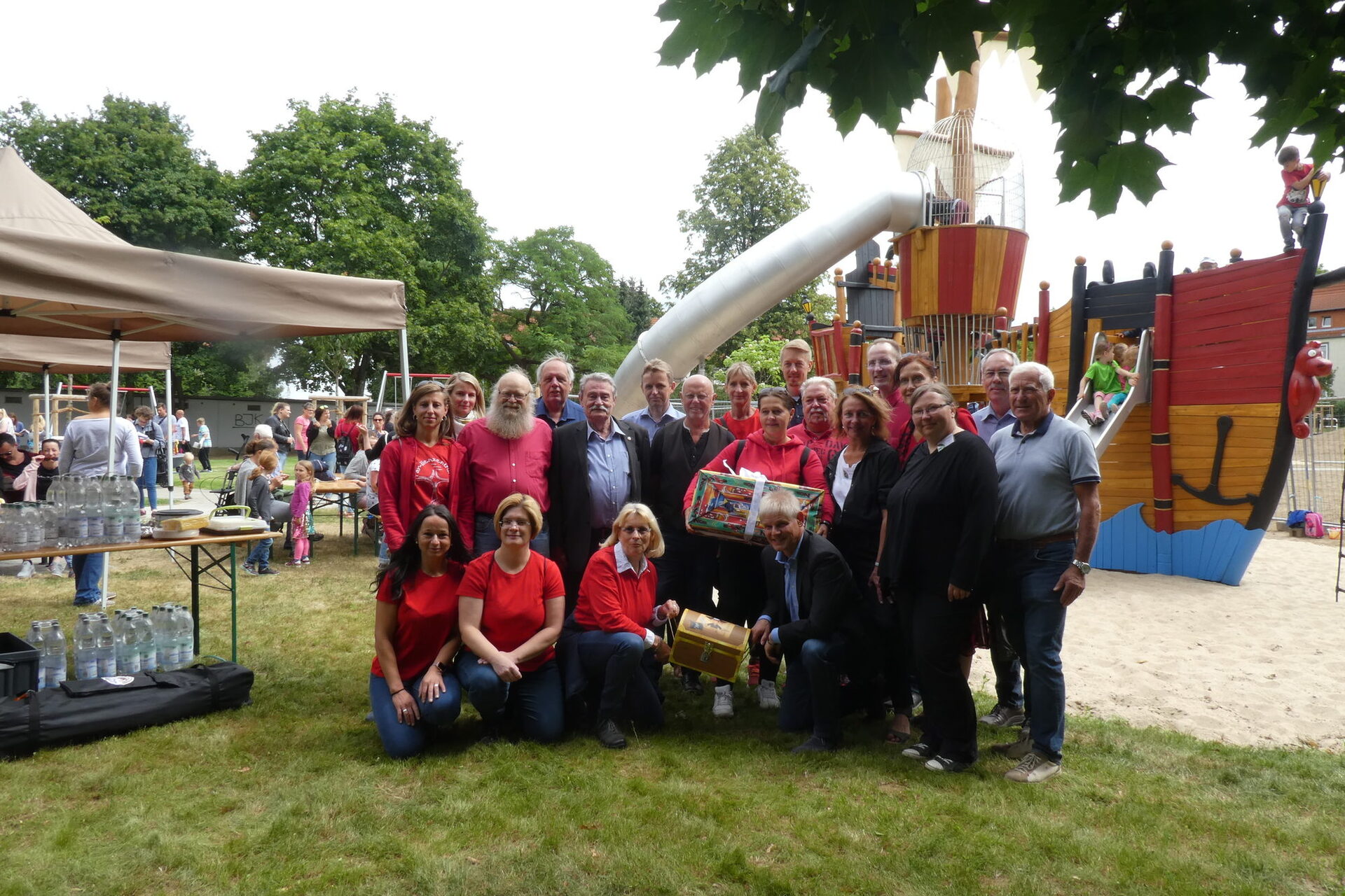 Da sich der Rasen in den Bereichen Spielwiese und Hügellandschaft noch entwickeln muss, fand erst einmal eine Teileinweihung des Spielplatzes statt. Zu welchem Zeitpunkt eine komplette Eröffnung erfolgen wird, ist vorrangig vom Wetter abhängig. Sobald sich eine feste Grasnarbe gebildet hat, wird die Fläche komplett freigegeben.