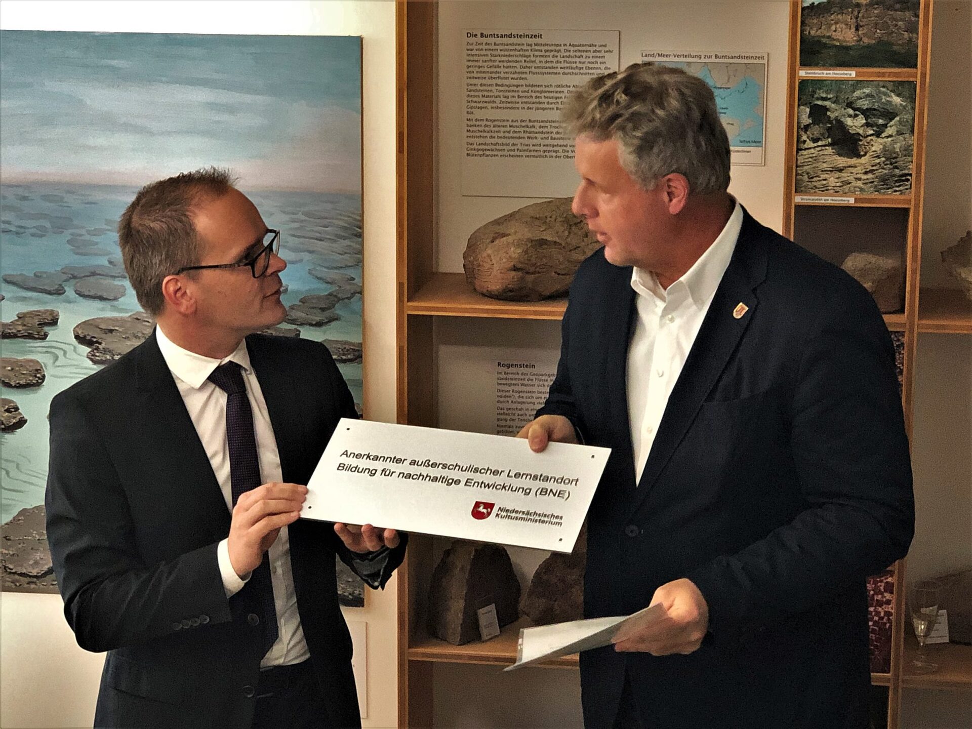 Die Verleihung der Urkunde fand im Geopark-Info-Zentrum in Königslutter durch Kultusminister Grant Hendrik Tonne statt. Die Urkunde, Plakette und die Tafel nahm für die Stadt Salzgitter Kulturdezernent Jan Erik Bohling entgegen.