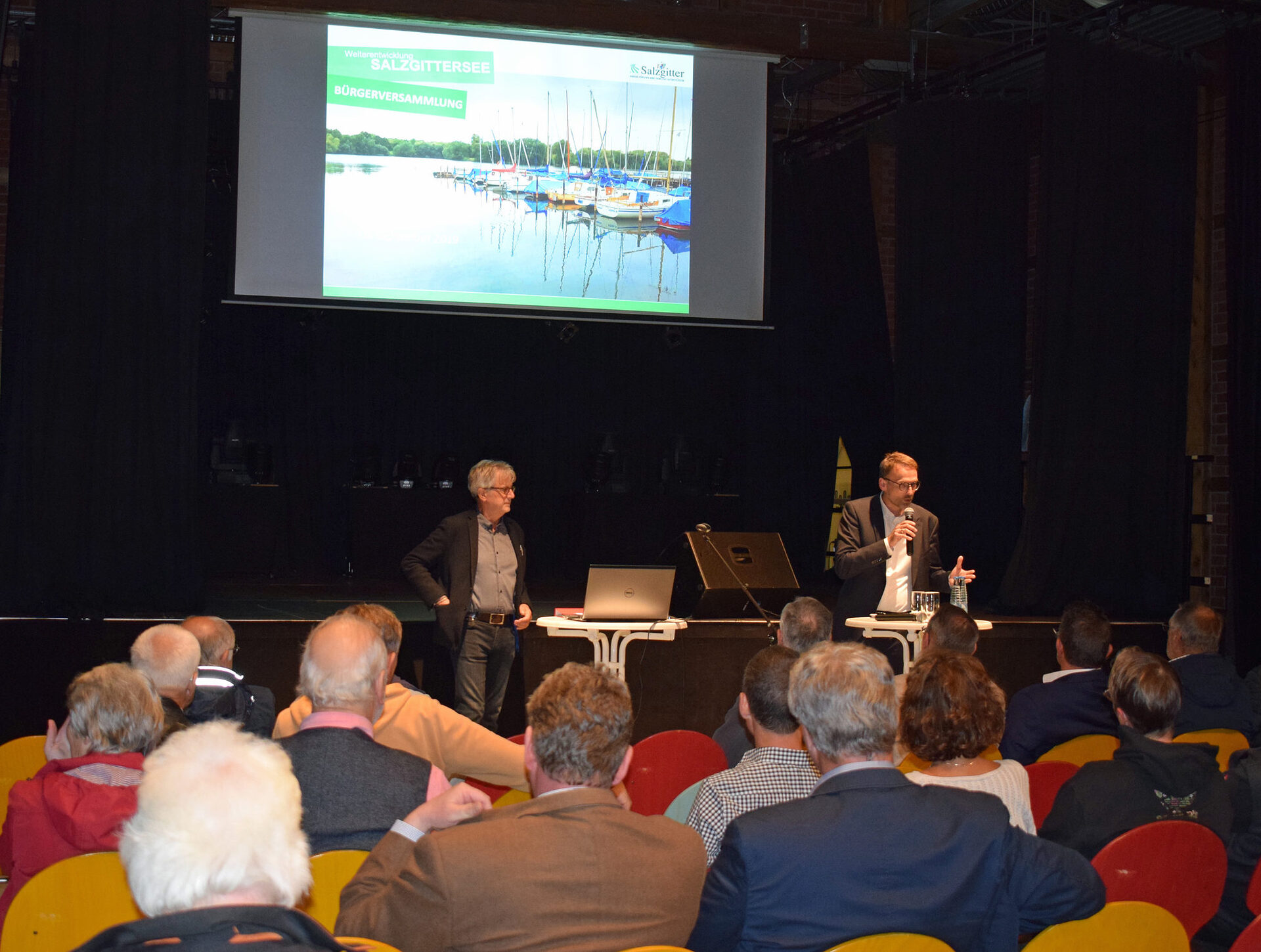 Prof. Walter Ackers vom Büro Ackers Partner Städtebau stellte bei der Versammlung die Ergebnisse des 10-monatigen Prozesses vor und betonte: "Einen so umfangreichen Beteiligungsprozess habe ich noch in keiner Stadt erlebt. Der Salzgittersee ist ohne Zweifel eine Stärke von Salzgitter. In den letzten Monaten ging es um die Frage, was für die Entwicklung des Salzgittersees aus Ihrer Sicht besonders sinnvoll ist."