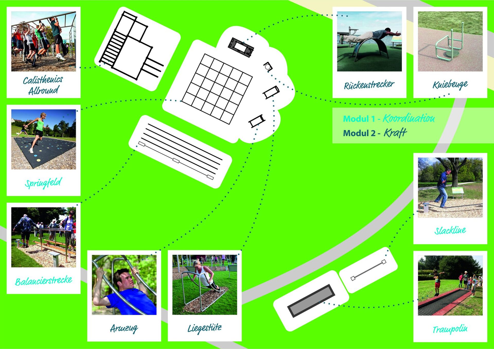 Für den Parcours wurden neun Geräte ausgesucht. Die Bäder, Sport und Freizeit Salzgitter GmbH, die später auch den Betrieb der Anlage übernimmt, sucht zur Finanzierung der einzelnen Stationen noch Silber-Partner, die ihr Logo auf den Tafeln mit Übungsbeschreibungen platzieren möchten. Wer als Bronze-Partner einsteigt, bekommt einen Platz auf der Partnertafel. Die Stadt stellt die Grünfläche über ihren Regiebetrieb zur Verfügung. Auch für die Bodenarbeiten zur Vorbereitung des Untergrundes werden noch Spender gesucht.