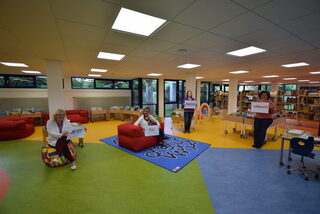 Leuchtende Farben prägen nun die Kinderbibliothek und sind Ausdruck für ein neues Konzept. Angepasst an die unterschiedlichen Nutzergruppen wurde der Raum aufgeteilt und pädagogisch an die Bedürfnisse unterschiedlicher Altersgruppen angepasst. Auf 350 Quadratmetern Fläche können Mädchen und Jungen aus rund 17.000 Bilderbüchern, Büchern, Tonies, DVDs, Zeitschriften, Hörbüchern und CDs auswählen. Auch thematisch ist alles zu finden: Von „A“ wie Abenteuer bis „Z“ wie Zirkus.