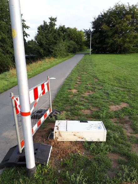 Insgesamt wurden 20 Maste durch Gewalteinwirkung schief gestellt, was zu Schäden an den Masten im Bereich der Mastklappen geführt hat. Die Standsicherheit der Maste ist jedoch nicht gefährdet. Weiterhin wurde ein Schaltschrank beschmiert und mit Gewalt umgeworfen. Dadurch bedingt ist das Schrankfundament gebrochen. Beides muss nun ersetzt werden.
