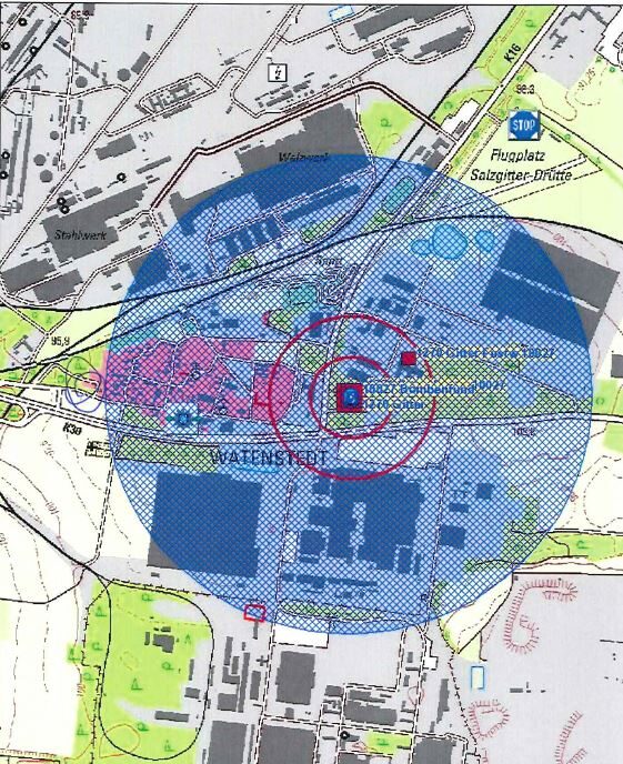 Um jede Gefahr auszuschließen, muss die Fläche in einem Radius von 1.000 Metern um die Fundstelle spätestens um 19:30 evakuiert sein. Diese Maßnahme betrifft insbesondere das Industriegebiet südlich der Industriestraße Mitte. Zahlreiche Unternehmen sowie die Ortslage SZ-Watenstedt sind betroffen und müssen geräumt werden.