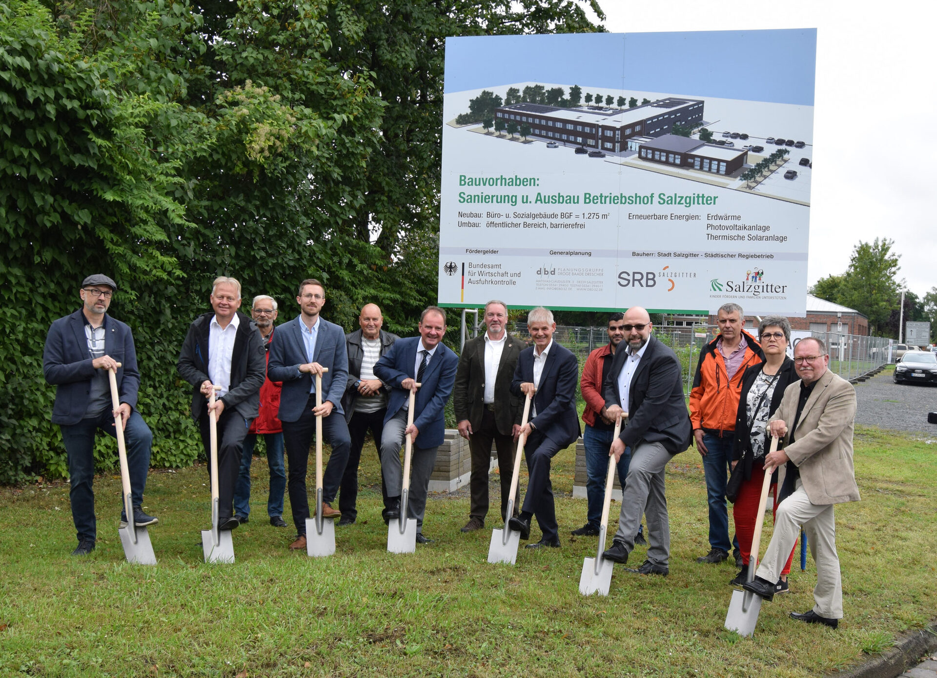 Anwesend waren Oberbürgermeister Frank Klingebiel, Dietrich Leptien als Betriebsleiter des SRB, Erster Stadtrat Eric Neiseke als zuständiger Dezernent, Thomas Huppertz, Ausschussvorsitzender des Betriebsausschusses, Thomas Dröge vom beauftragen Planungsbüro Dröge, Baade, Drescher sowie Führungskräfte des SRB und Mitglieder des Dienststellenpersonalrates sowie der Schwerbehindertenvertretung.