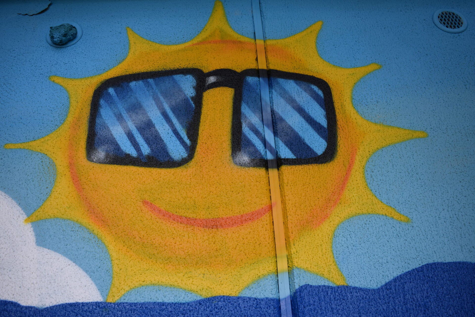Dann erfuhren die 18- und 19-Jährigen beispielsweise, wie sie die Dosen am besten halten sollen und mit welcher Technik gesprayt werden soll. „Die Details entstanden meistens spontan“, sagt Robert Bischoff. Die Krabbe mit langen Wimpern, der Seestern oder der Hai mit seinen langen Zähnen. Die Ideen setzten die Jugendlichen künstlerisch um, auch wenn natürlich die eine oder andere Stelle übermalt werden musste, weil die Umsetzung anfangs noch nicht wie geplant aussah…