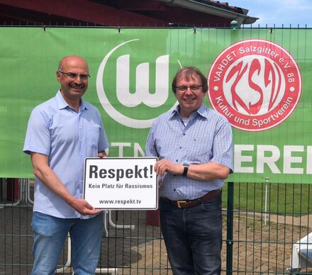 Die IG Metall hatte das Schild - wie schon vielen anderen Organisationen, Unternehmen und der Stadtverwaltung zuvor - zur Verfügung gestellt. Damit zeigen die Vereinsmitglieder, wie wichtig ihnen Toleranz und Respekt gegen jede und jeden sind und das alle beim Verein herzlich willkommen sind. Dr. Härdrich hob bei der Übergabe die wertvolle Arbeit hervor, auch und vor allem in Sachen Integration und äußerte seinen Respekt für die Arbeit des KSV Vahdet in diesem Bereich.