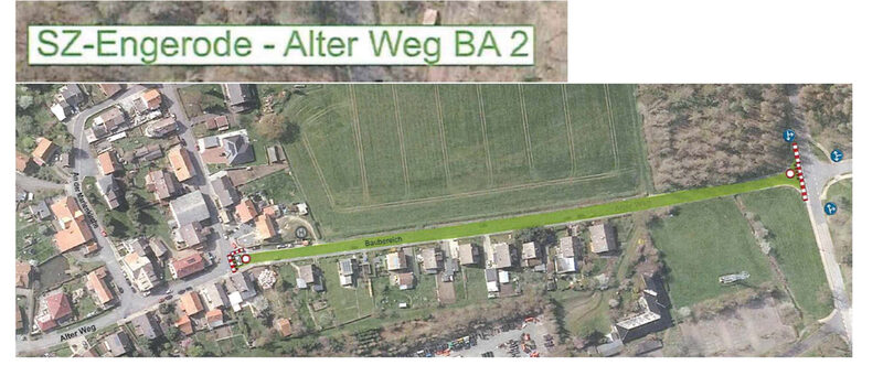 - Der 1. Bauabschnitt vom 6. April bis 7. April umfasst den hinteren Bereich ab Triftweg bis zum Wendeplatz. In dieser Zeit kann dieser Bereich sowie die Straße An der Hannoverschen Treue nicht von Fahrzeugen benutzt werden.