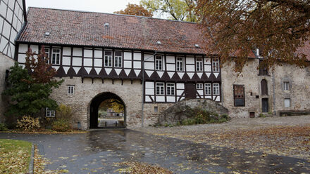 Auch ein Gefängnis war Teil der Burg. Ein einziger Raum in der Pförtnerstube diente als Kerker. Rechts vom Tor macht eine verbarrikadierte Fensteröffnung noch heute auf das ehemalige Gefängnis aufmerksam.