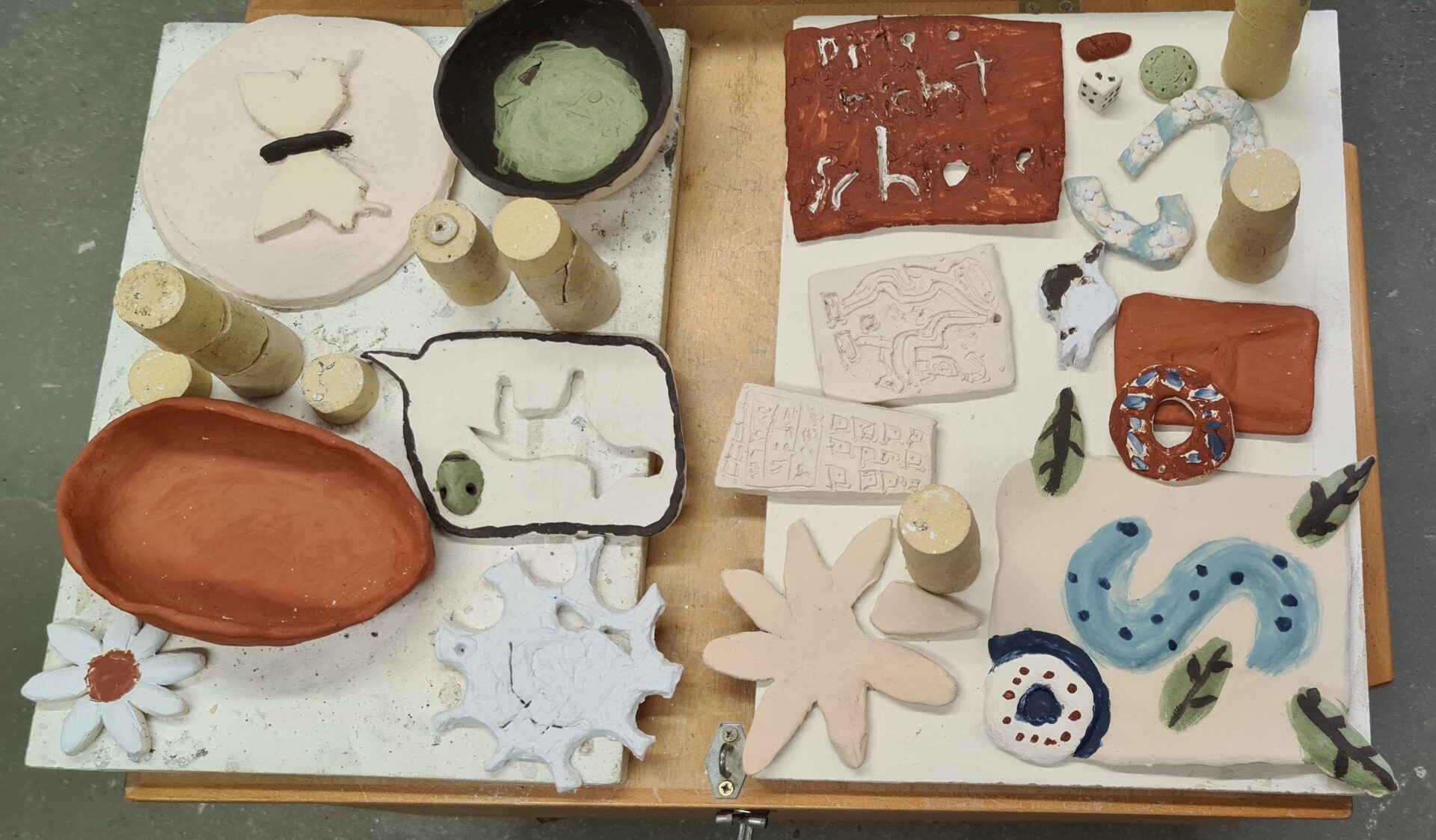 Die eigene Kreativität war dann ebenso gefordert beim Erstellen eigener Objekte aus Ton und Pappmachè. In der Werkstatt der Volkshochschule entstanden die unterschiedlichsten Kunstwerke in Groß und Klein.