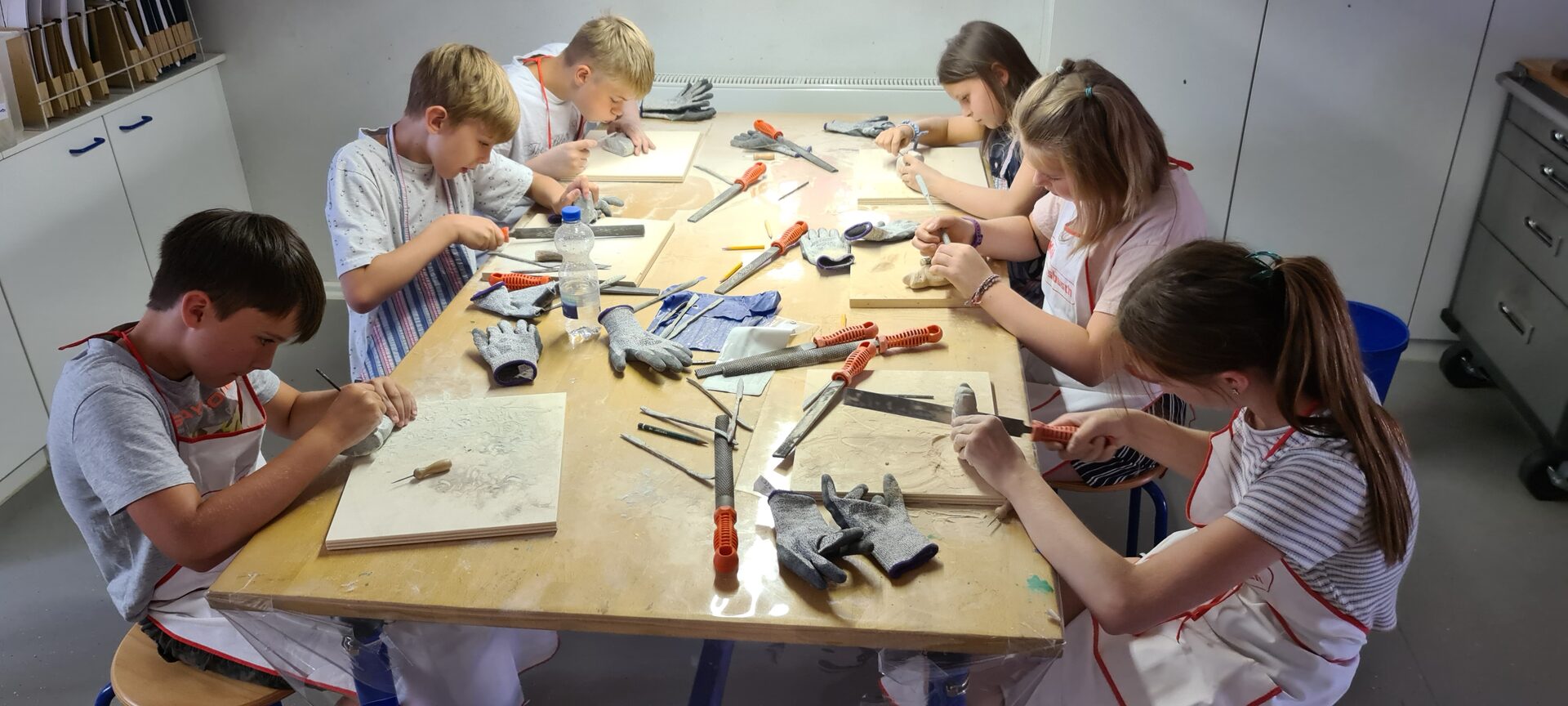 Künstlerisch ging es weiter bei dem Besuch des Schloßes Salder. Neben vielen Informationen in und um das Schloß erhielten die Mädchen und Jungen von Museumspädagogin Christine Kellner-Depner eine Einführung in die Gestaltung von Speckstein. Es entstanden auch hier individuelle Kunstwerke, die die Gruppe begeistert mitnahm.