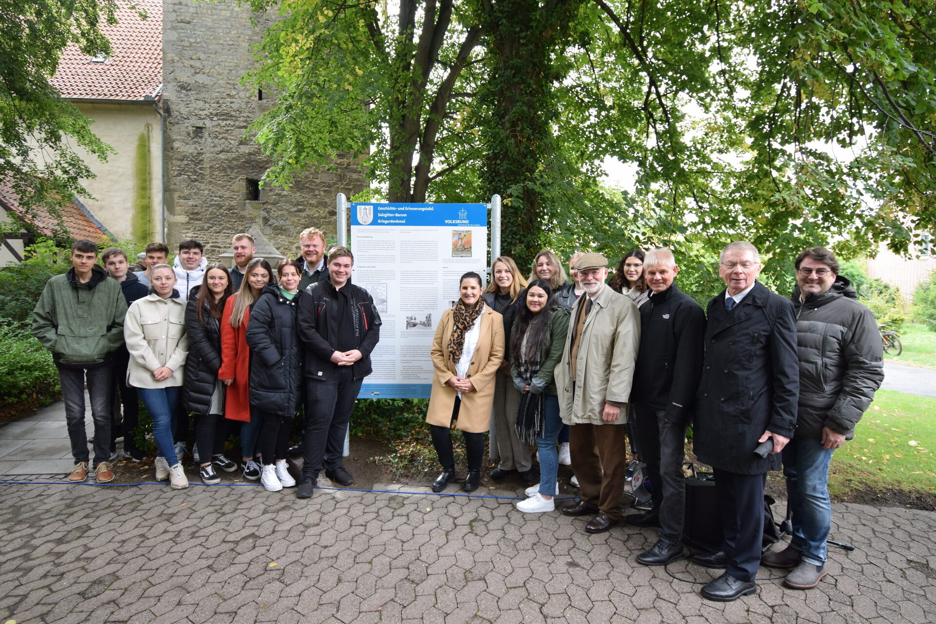 Dabei handelt es sich um ein Projekt, das durch den Bildungsreferenten des Volksbundes Deutsche Kriegsgräberfürsorge e.V., Dr. Rainer Bendick unterstützt wird. Forschungsobjekt war das Kriegerdenkmal an der St. Nicolai-Kirche. Anhand des Denkmals haben sich die teilnehmenden Schülerinnen und Schüler inhaltlich mit dem Kriegsende 1918, der verdrängten Niederlage sowie der „Dolchstoßlegende“ und der damaligen Presseberichterstattung zum Kriegsende 1918 auseinandergesetzt.