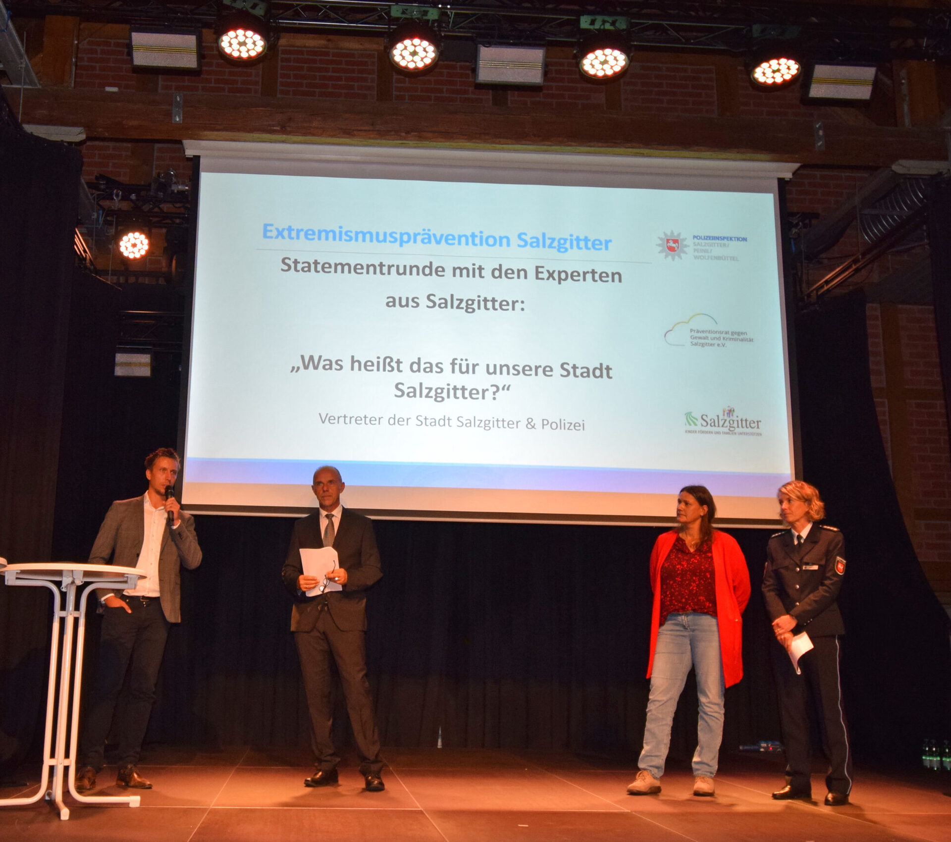 Den Abschluss der Veranstaltung bildete eine Statementrunde mit Alexander Uebel (Leiter Zentraler Kriminaldienst der Polizeiinspektion Salzgitter/Wolfenbüttel/Peine) sowie Martina Malak (Stadtjugendpflegerin der Stadt Salzgitter).