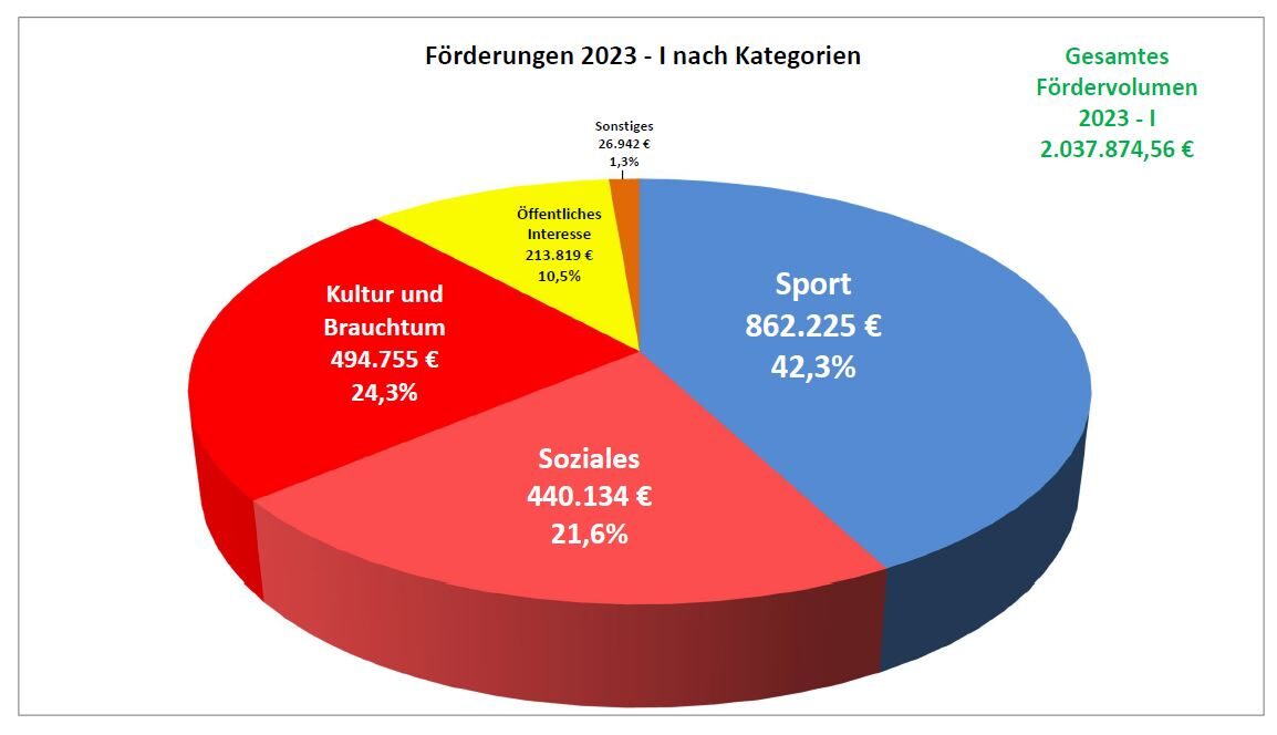 Jeweils zwei Vereine erhalten sogar Förderungen von rund 100.000 Euro beziehungsweise von 200.000 Euro.