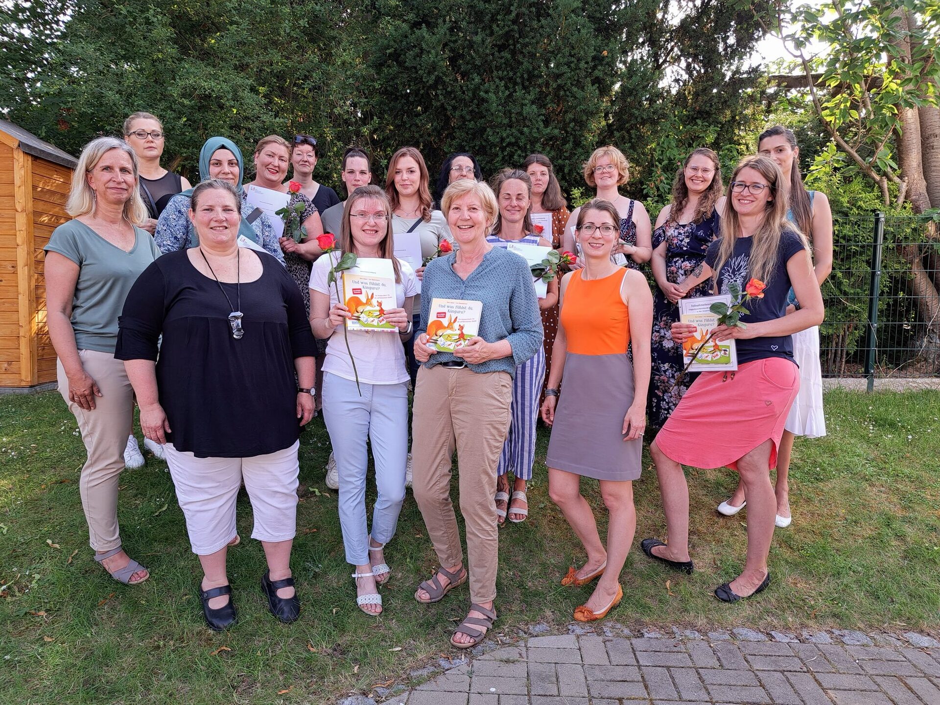 Während der feierlichen Übergabe im Garten der Evangelischen Familienbildungsstätte wurde das Engagement der neuen Kindertagespflegepersonen gewürdigt: Die Frauen haben erfolgreich an dem Grundkurs teilgenommen, den der Familienservice der Stadt Salzgitter organisiert und die Evangelische und die Katholische Familienbildungsstätten ausrichten.