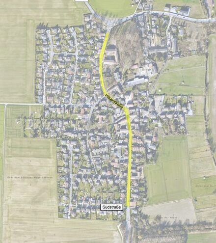 Für die Sanierungsarbeiten wird dieser Bereich der Hauptstraße voll gesperrt. Der Fahrzeugverkehr, einschließlich der Buslinien, wird umgeleitet. Die Umleitung ist ausgeschildert. Für die Anwohner des Ortes bleibt die Zufahrt über die Südstraße erhalten.