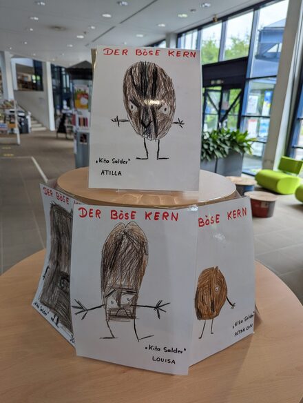 Die entstandenen Kunstwerke sind in einer kleinen Ausstellung bis Ende Mai 2023 in der Stadtbibliothek in Lebenstedt während den Öffnungszeiten anzusehen.