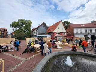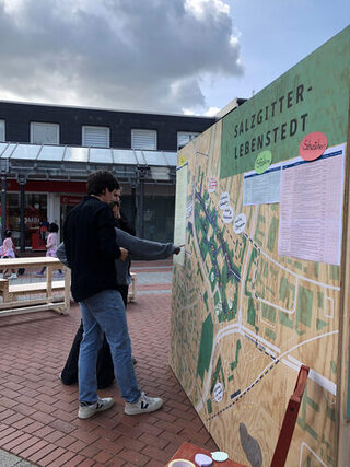 In Lebenstedt, am 30. September, haben sich ca. 150 Bürgerinnen und Bürger mit eigenen Ideen eingebracht. Darunter waren auch einige Jugendliche, die kleine Modelle ihrer Wunschvorstellungen bastelten. Als besonderer Gast nahm Iyabo Kacmarek an der Veranstaltung teil. Sie berichtete den Anwesenden von ihren Erfahrungen als Geschäftsführerin der „Unter einem Dach gUG“, mit der sie die Innenstadt von Hannover durch verschiedene soziale Projekte aus den Bereichen der Integration und kultureller Teilhabe belebt. In den Gesprächen wurde deutlich, dass sich die Lebenstedter für ihre Innenstadt noch mehr Begrünung, Sauberkeit und konsumfreie Aufenthaltsmöglichkeiten wünschen. Viele äußerten aber auch die Hoffnung, dass die Eigentümer einiger Immobilien ihre Fassaden sanieren könnten.