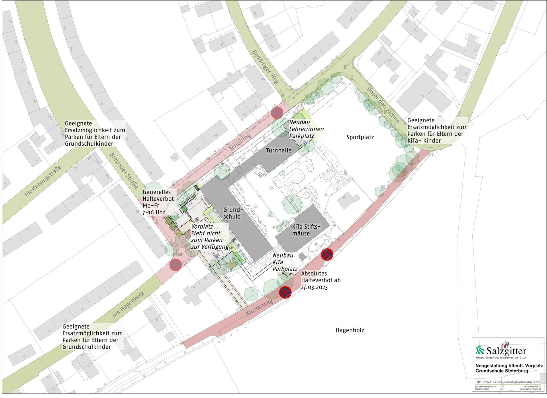 Die Neugestaltung des öffentlichen Platzes vor der Grundschule ist ein Projekt des Städtebauförderprogramms „Sozialer Zusammenhalt“ (ehemals „Soziale Stadt“). Wer Fragen zu den geplanten Maßnahmen und zu weitergehenden Projekten im Bereich des Städtebauförderprogramms „Sozialer Zusammenhalt“ hat, kann sich gerne an das Büro des Quartiersmanagement, Lange Hecke 4; 38239 Salzgitter, Tel: 05341 / 8879201 oder per Email: kontaktsteterburgnet bei Sabine Naats und Max Grafinger melden.