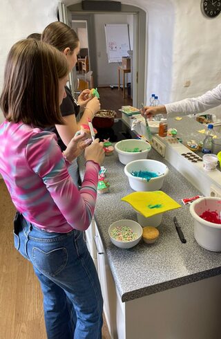 In der kreativen Osterwerkstatt entstanden kleine originelle Ostergeschenke: selbst bemalte Keramik-Hasen und –Tassen, puschlige Pompom-Hasen und –Küken, verzierte Eierkerzen, bemalte Steine. Bei einem Besuch in der Stadtbibliothek in Salzgitter-Bad wurden kleine Samenbomben hergestellt und dafür bestimmte Tontöpfe angemalt. Als Erinnerung für diese ereignisreiche Woche erstellten die Teilnehmenden individuelle Fotobücher.