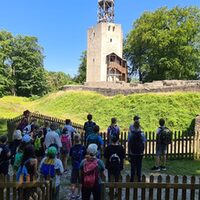 Am Dienstag besuchten sie die Burg Lichtenberg und erlebten eine Vorführung der Wurfmaschine. Es entstanden auch die ersten Fotos zum Thema „perspektivisches Fotografieren“. Mit Hilfe einer Fotorallye und der App Spürnasen erkundeten die Gruppe am Mittwoch den Piratenspielplatz am Salzgittersee - bei strahlendem Sonnenschein und hohen Temperaturen. Donnerstags stand der Besuch von Schloß Salder auf dem Programm. Dort gestalteten die Kinder und Jugendliche in der dortigen Lernwerkstatt unter anderem Armbänder und Schlüsselanhänger aus Leder.