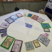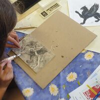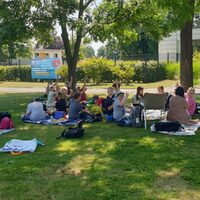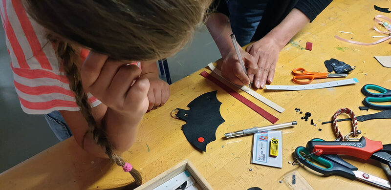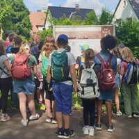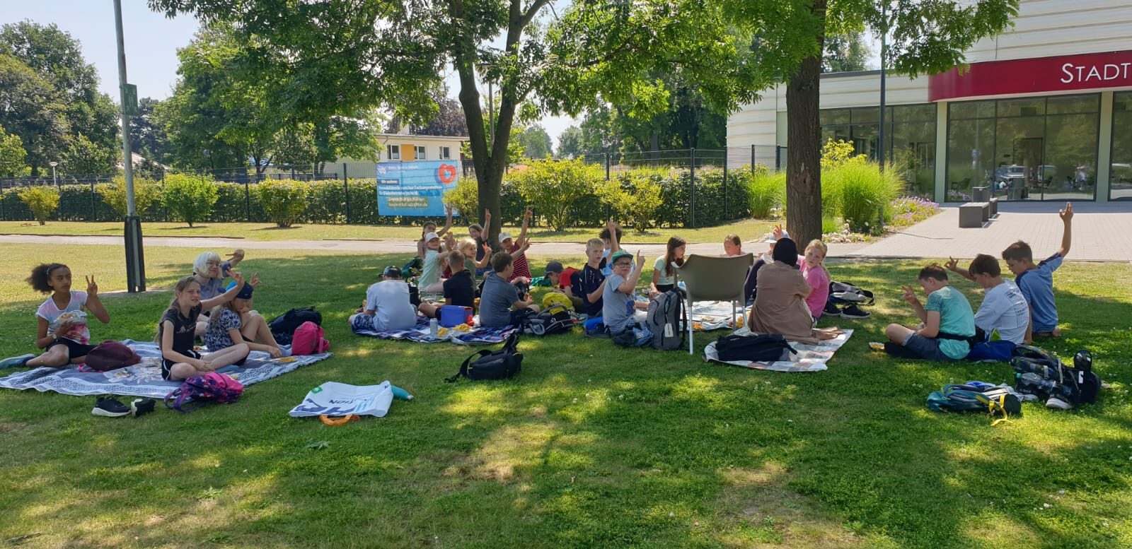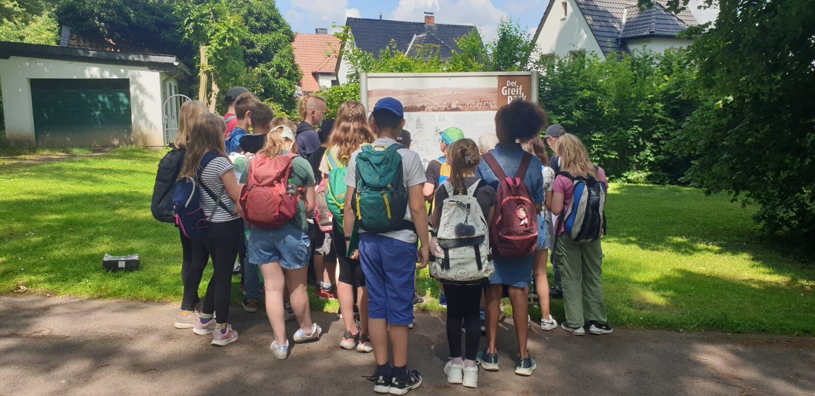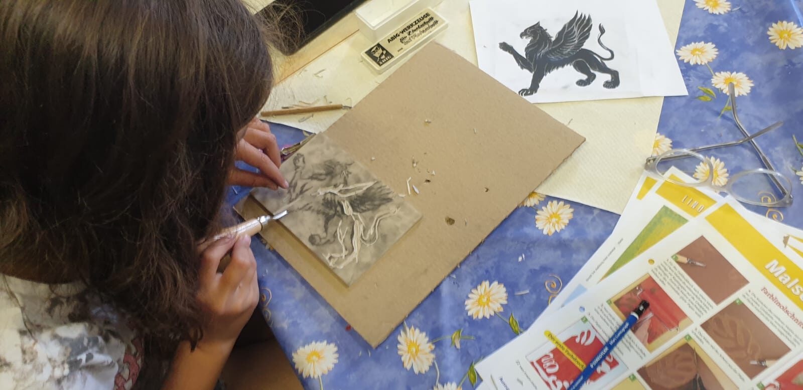 23 Kinder und Jugendliche im Alter von 9 bis 14 Jahren gingen unter der Leitung von Maximilian Sieker bei bestem Sommerwetter in der ersten Ferienwoche auf Entdeckertour. Er wurde unterstützt von Melanie Schöckel und Zahraa Alshehadeh. Unter dem Titel „Kreativ durchstarten“ erkundeten sie den Märchenpfad im Greifpark und gestalteten am Nachmittag mit Hilfe von Linoldruck Karten und Taschen.