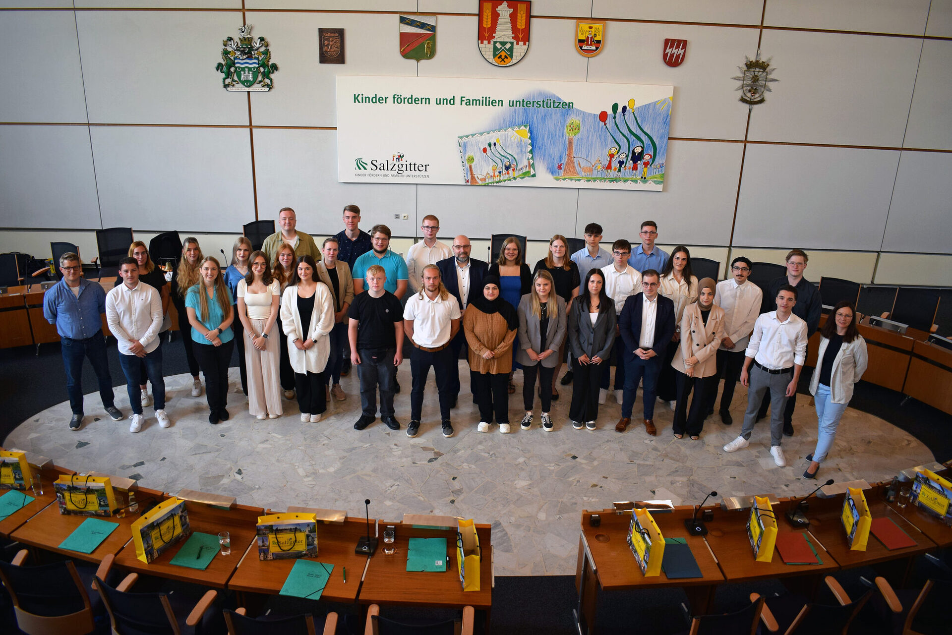 Die Nachwuchskräfte wurden von Eric Neiseke, Erster Stadtrat der Stadt Salzgitter, begrüßt. „Im Namen unseres Oberbürgermeisters Frank Klingebiel, der Verwaltung und des Rates der Stadt freue ich mich, dass Sie sich für das Team der Stadtverwaltung entschieden haben. Sie sind unsere Zukunft, und gemeinsam können wir weiter daran arbeiten, unsere Stadt zu einer kinder- und familienfreundlichen Lernstadt zu machen“, so der Erste Stadtrat.