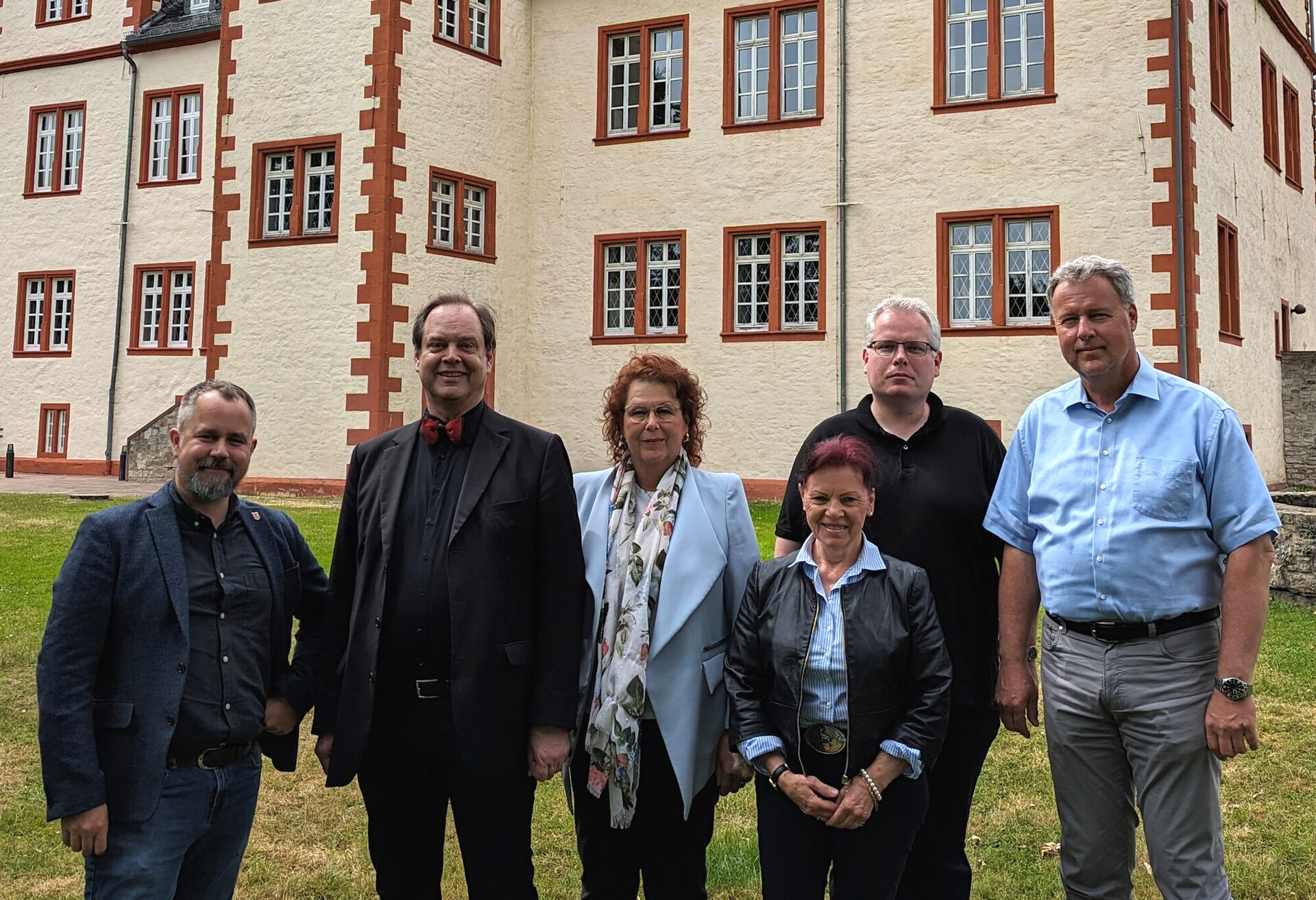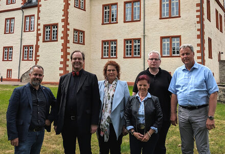 Freuen sich auf die neue Veranstaltungsreihe (von rechts): Stadtrat und Dezernent für Wirtschaft, Kultur und Digitales Jan Erik Bohling, Stadtdenkmalpfleger Christoph Lücke, Sigrid Lux (1. Vorsitzende Förderverein Burg Lichtenberg e. V.), Inge Pelzer (Geschäftsführerin Förderkreis Schloss Salder e. V.), Dr. Heiko Laß (Vorsitzender Landesgruppe Niedersachsen / Deutsche Burgenvereinigung e. V.), Arne Homann (Leiter Städtisches Museum Schloss Salder).