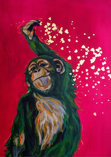 Mit jedem Pinselstrich setzt sie ihre Überzeugung um, dass Tiere die Menschen stärken und zu persönlichem Wachstum inspirieren.