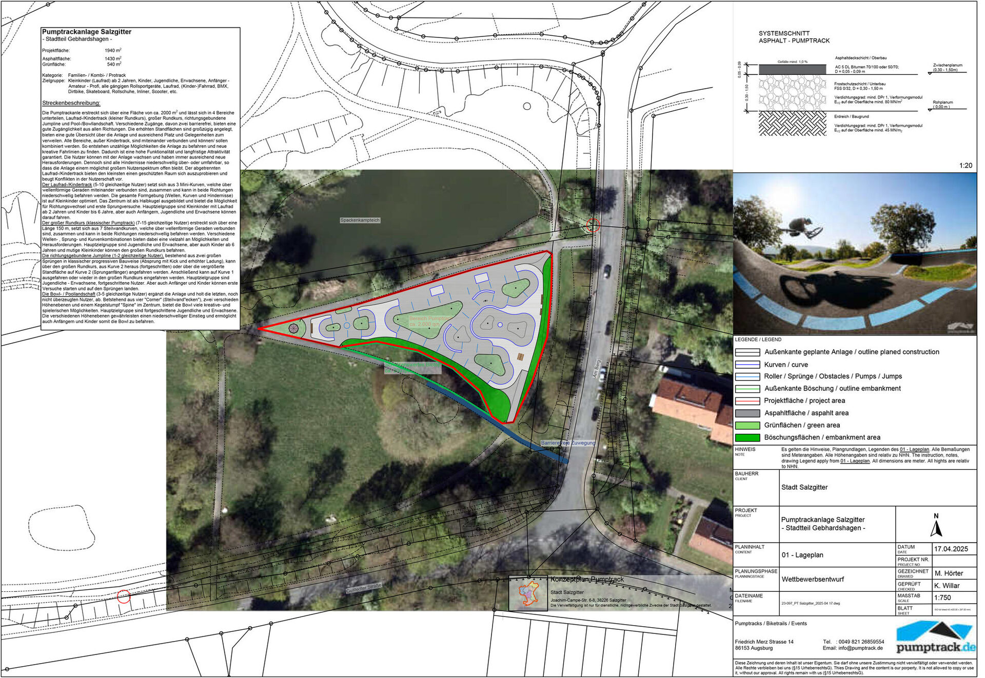 Der Rat der Stadt Salzgitter hat daraufhin am 17. Dezember 2024 den Bau einer Pumptrackanlage mit dem geänderten Standort in der Grünanlage „Spackenkamp" südlich des Teiches beschlossen.