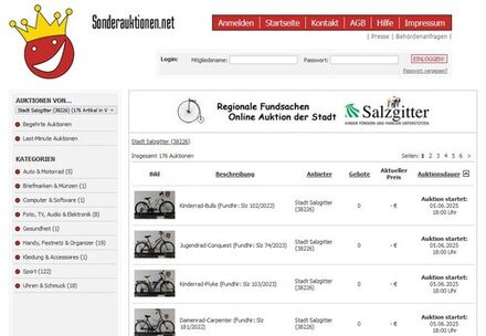 Es gibt auch in diesem Jahr wieder eine große Auswahl an interessanten Artikeln, wie Fahrräder, Smartphones und Schmuck. Die angebotenen Artikel können nur über die Vorschau-Liste bis zum Auktionsstart am 05.06.2025 unter der genannten Internet-Adresse angesehen werden. Eine persönliche Anschauung der Artikel ist vor und während der gesamten Auktion nicht möglich. Die Internetplattform bietet darüber hinaus die Möglichkeit, Artikel nach erfolgter Registrierung auf eine Beobachtungsliste setzen zu können, damit man nicht verpasst, wie hoch der gewünschte Artikel gehandelt wird und wie Viele sich bereits dafür interessieren. Es werden insgesamt mehr als 100 Artikel angeboten.