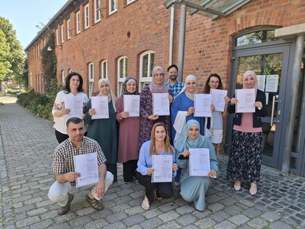 Wünschenswert sind darüber hinaus Teilnehmende mit Migrationshintergrund, die in ihren Herkunftsländern bereits im pädagogischen Bereich gearbeitet und mindestens Sprachkenntnisse auf Niveau B2 haben (Hören: im Fernsehen die meisten Sendungen in Standardsprache verstehen; Sprechen: sich relativ mühelos an einer Diskussion beteiligen und ihre Ansichten vertreten, Lesen: Artikel und Berichte über aktuelle Fragen und Gegenwart verstehen und Schreiben: detaillierte Texte schreiben).
