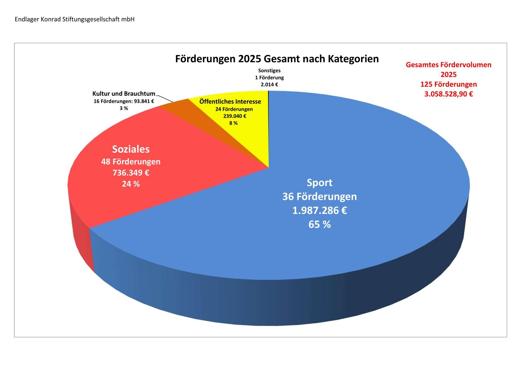Франк Клингебиль с гордостью продолжает: "Благодаря этим последним решениям в 2025 году мы профинансировали в общей сложности 125 проектов на сумму около 3 миллионов евро. В нашем регионе нет другого фонда, который распределял бы такой большой общий объем финансирования в год. Наш фонд Endlager Konrad Stiftungsgesellschaft mbH является действительно сильной опорой нашей чрезвычайно важной волонтерской деятельности. Спектр проектов так же разнообразен, как и наше городское общество. Это очень важно не только для меня, но и для всего попечительского совета".