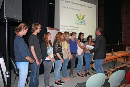 Gedanken hatten sich bereits die Schüler der Klasse 10f1 vom Kranich-Gymnasium gemacht, die sich an dem Wettbewerb der Stadt beteiligt, den Slogan „KlimaschutzSZ“ entwickelt und gewonnen hatten. Die 28 Schüler freuten sich über den Kinogutscheine, die ihnen Marcel Bürger überreichte. Der Bürgermeister begrüßte es, dass sich die jungen Menschen intensiv mit dem Thema Klimaschutz und Energiewende beschäftigt haben.